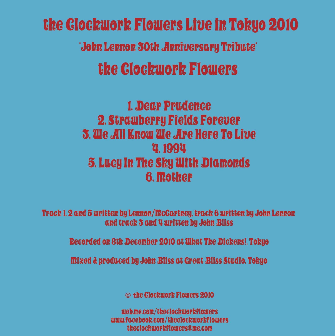 'John Lennon 30th Anniversary Tribute Live Album' (2010) Artwork by Anthea Bliss © Clockwork Flowers 2010