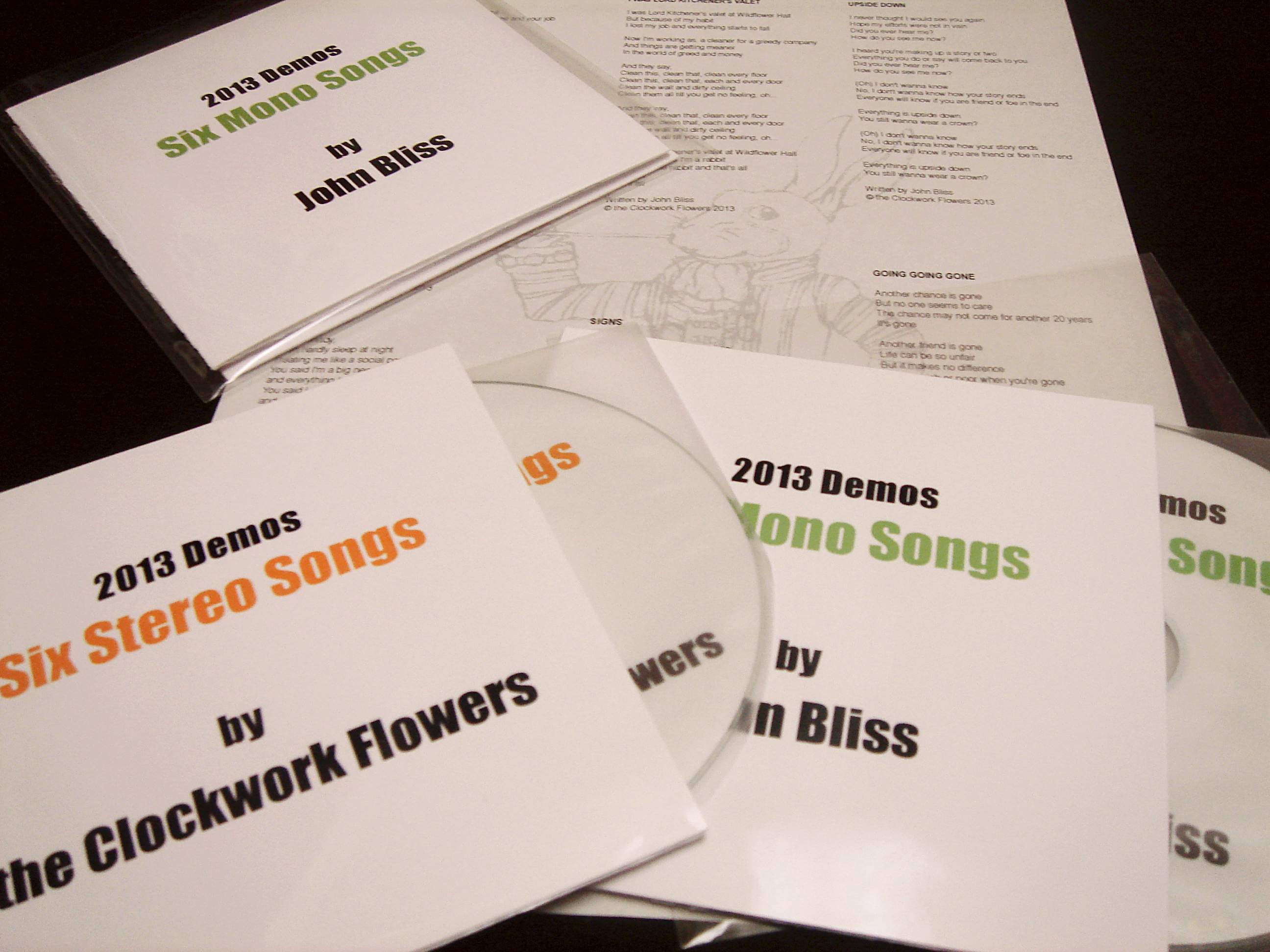 ‘2013 Demos - Six Mono Songs & Six Stereo Songs’ Limited Edition Double CD Set, all handmade at Great Bliss Studio by Anthea Bliss 2013