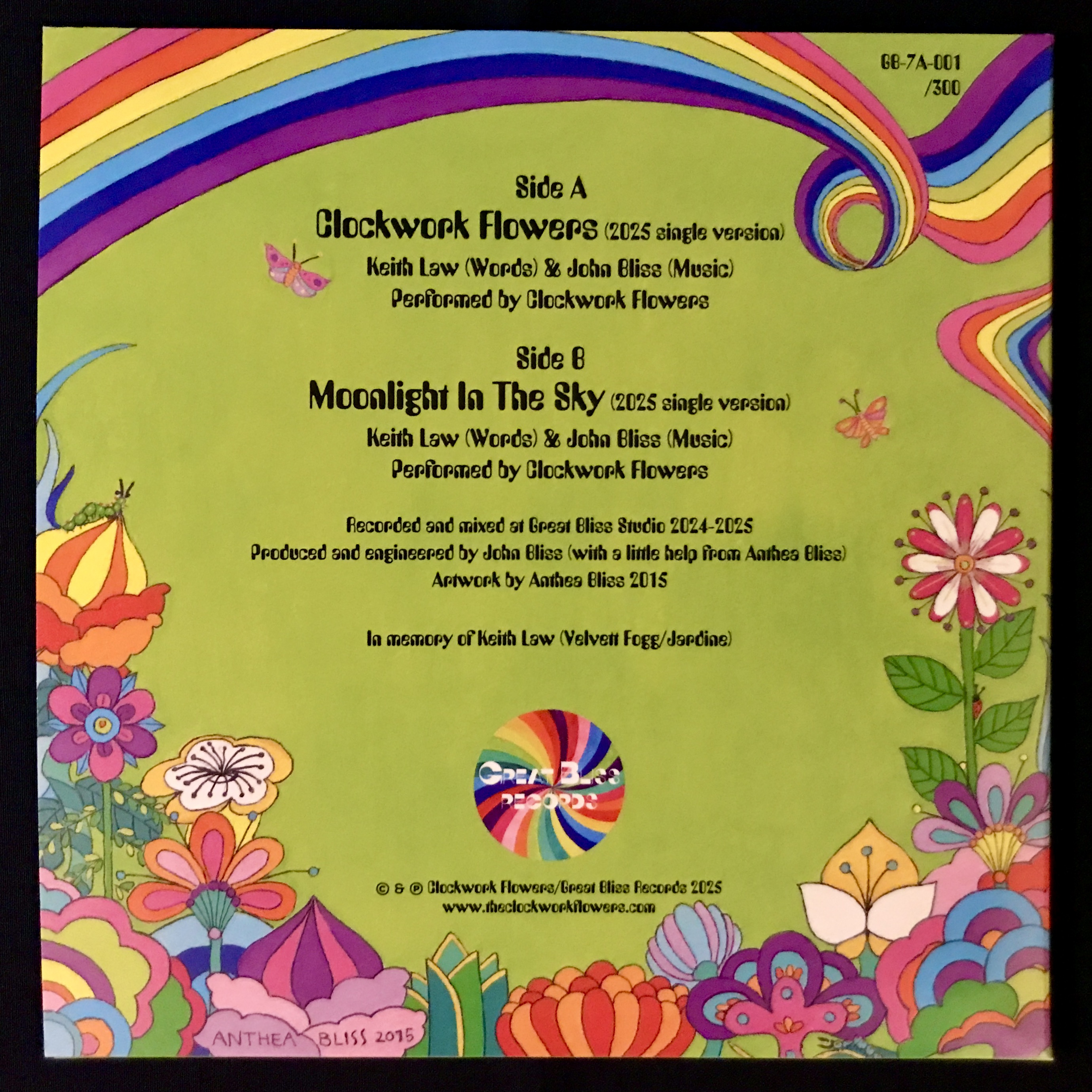 'Clockwork Flowers 2025 Singles' 7" vinyl single (2025) Artwork by Anthea Bliss © Clockwork Flowers/Great Bliss Records 2025